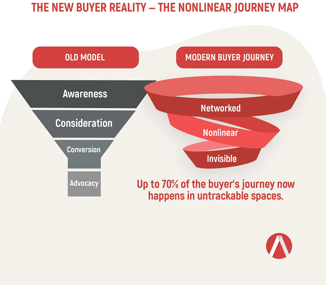 Buyers are no longer linear. They are networked, nonlinear, and nuanced, absorbing brand value through trust networks long before a marketer sees a dashboard spike.