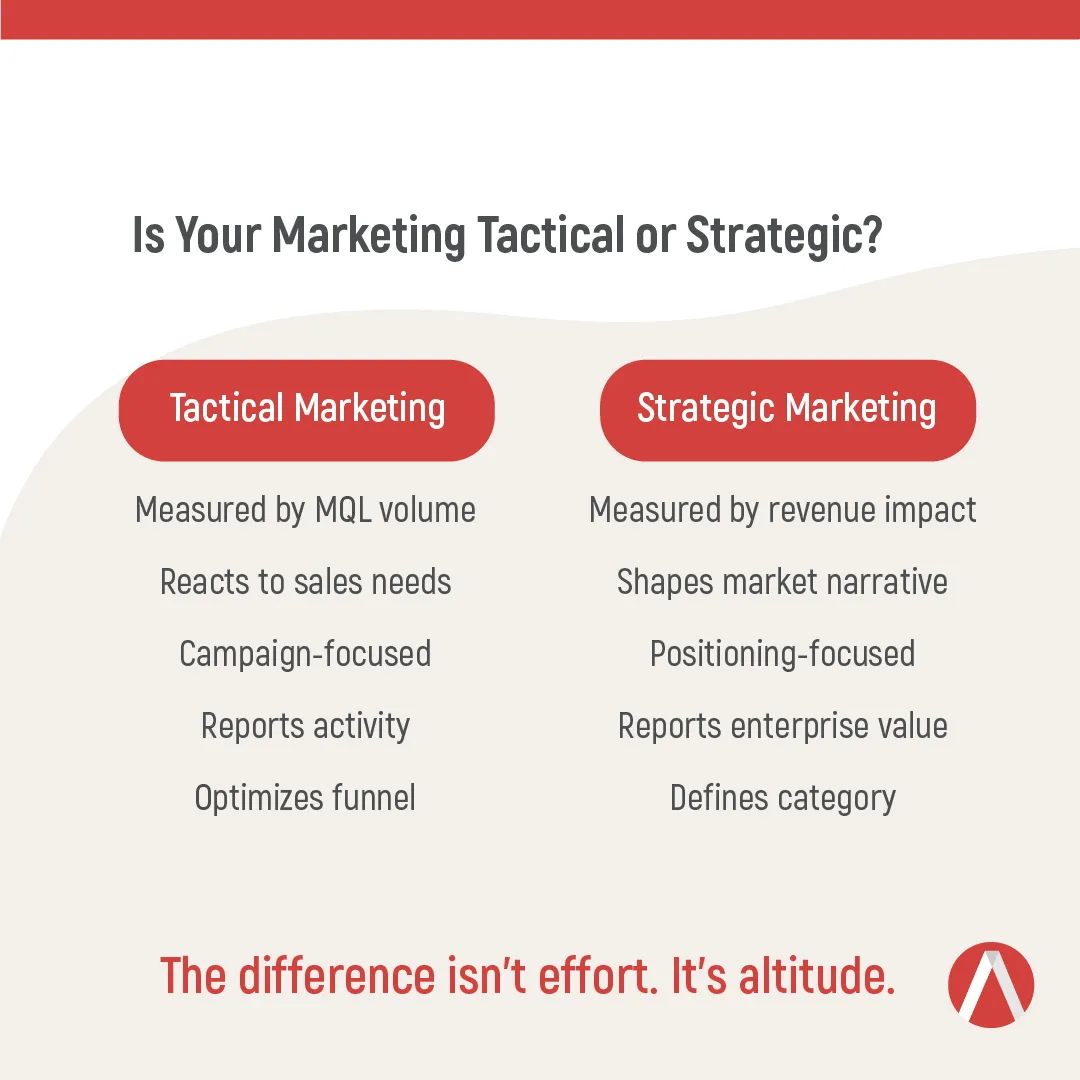 Performance marketing can optimize what exists. Strategic marketing defines what the company stands for. Without positioning, performance becomes expensive. Without clarity, campaigns compete on cost instead of conviction. The strongest growth organizations understand this balance. They fund both the engine and the architecture.